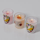 Available as a mini-votive set! A continuation of our collaboration with the Grateful Dead! We developed unique scented projects that celebrate the band’s legacy and iconography. Arose is a scented candle in decorated glass with an original all-natural fragrance!