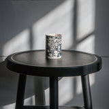 Each container is one-of-a-kind porcelain, cast by hand at our studio in NYC. Color appearing to be brushed atop the surface of the vessel is, upon closer inspection, charcoal-stained slip painted inside the mold, inlaid within the natural, uncolored porcelain. Clay is sourced from Upstate New York.