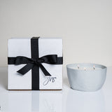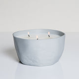 The grey porcelain container is reissued from our archives, originally designed by Sarah Cihat, and produced in extremely limited quantities by hand at our studio in NYC. What appears to be a gradient of dents toward the bottom of the vessel creates a subtle and beautiful play of shadows. This form will not be available again.