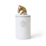 Joya collaborates with designer Max Poglia to create the "Affumicata" limited edition porcelain candle with horseshoe relief and custom porcelain lid with brass horse.
